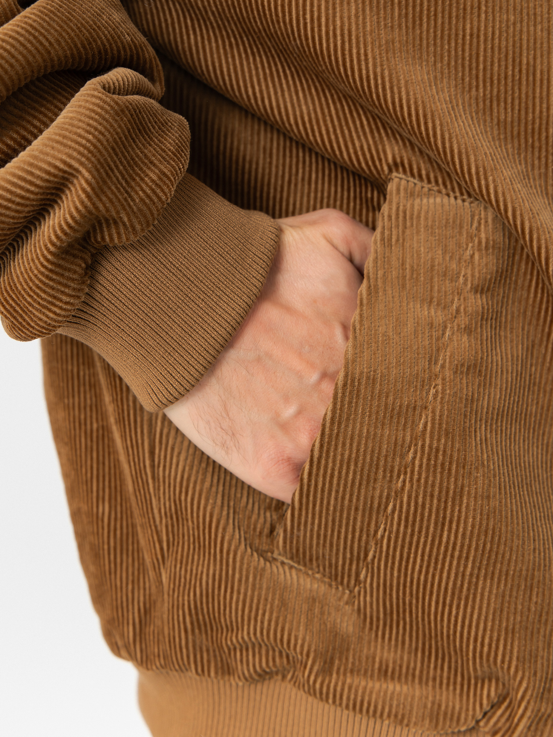• Jachetă bomber bărbătească din catifea, cu o croială lejeră și lungime în talie, finisată cu manșete și tiv cu nervuri. Epoleții mânecilor prezintă un model în carouri și un plasture cu logo-ul Volcom pe piept. Un interior izolat cu blană artificială oferă confort în zilele reci. Jacheta are, de asemenea, un buzunar interior.