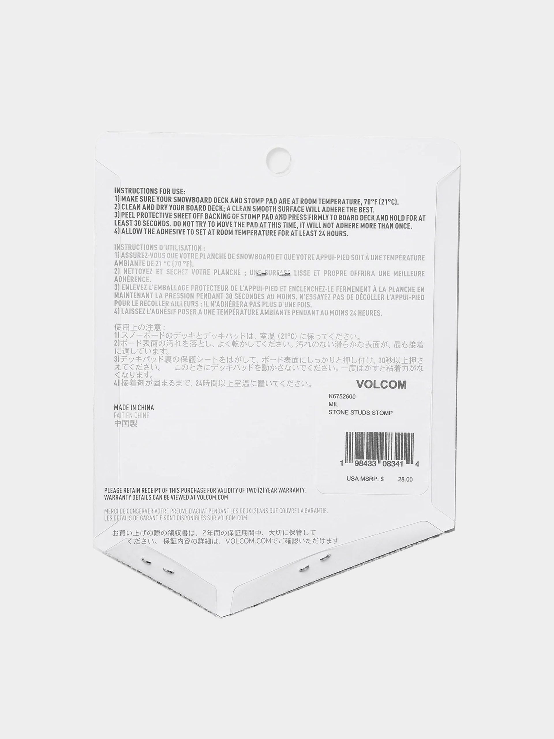 • Stone Studs Stomp de la Volcom este un pad care vă oferă o aderență fermă pe placă. Cu șase crampoane autoadezive îl puteți poziționa acolo unde aveți cea mai mare nevoie de aderență. Datorită benzii puternice 3M, acestea rămân ferm în poziție, iar aliajul de zinc nu corodează – astfel încât să văóai liniștea pentru mai mult timp. Ideal pentru a îmbrățișa controlul pe pantele înghețate și pentru a împinge fără stres.
