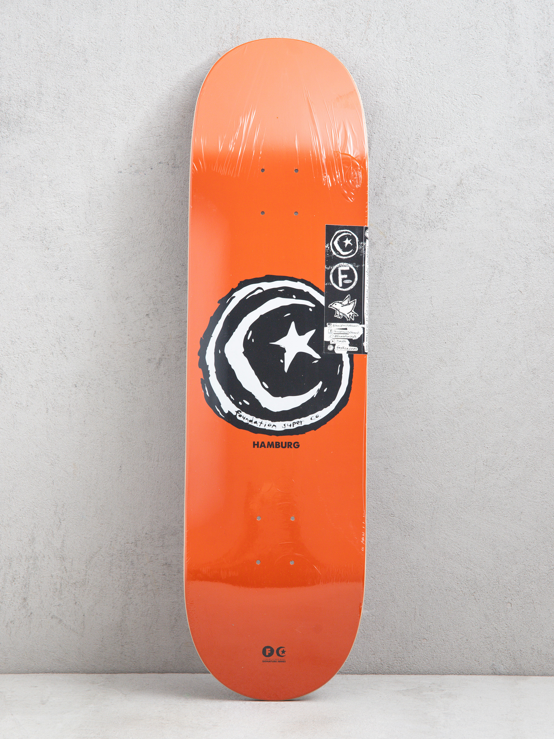 • Foundation Hamburg Signature este modelul pro al lui Ryan Hamburg în stilul de semnătură Foundation. Această punte oferă stabilitate și confort excepționale, ideale pentru patinatoriiócare preferă o platformă mai mare pentru aterizări, bowls sau plimbări mai rapide. Construcția clasică din 7 straturi de arțar asigură durabilitate, rigiditate și pop solid, în timp ce grafica Star & Moon oferă plăcii o senzație unică, atmosferică.
