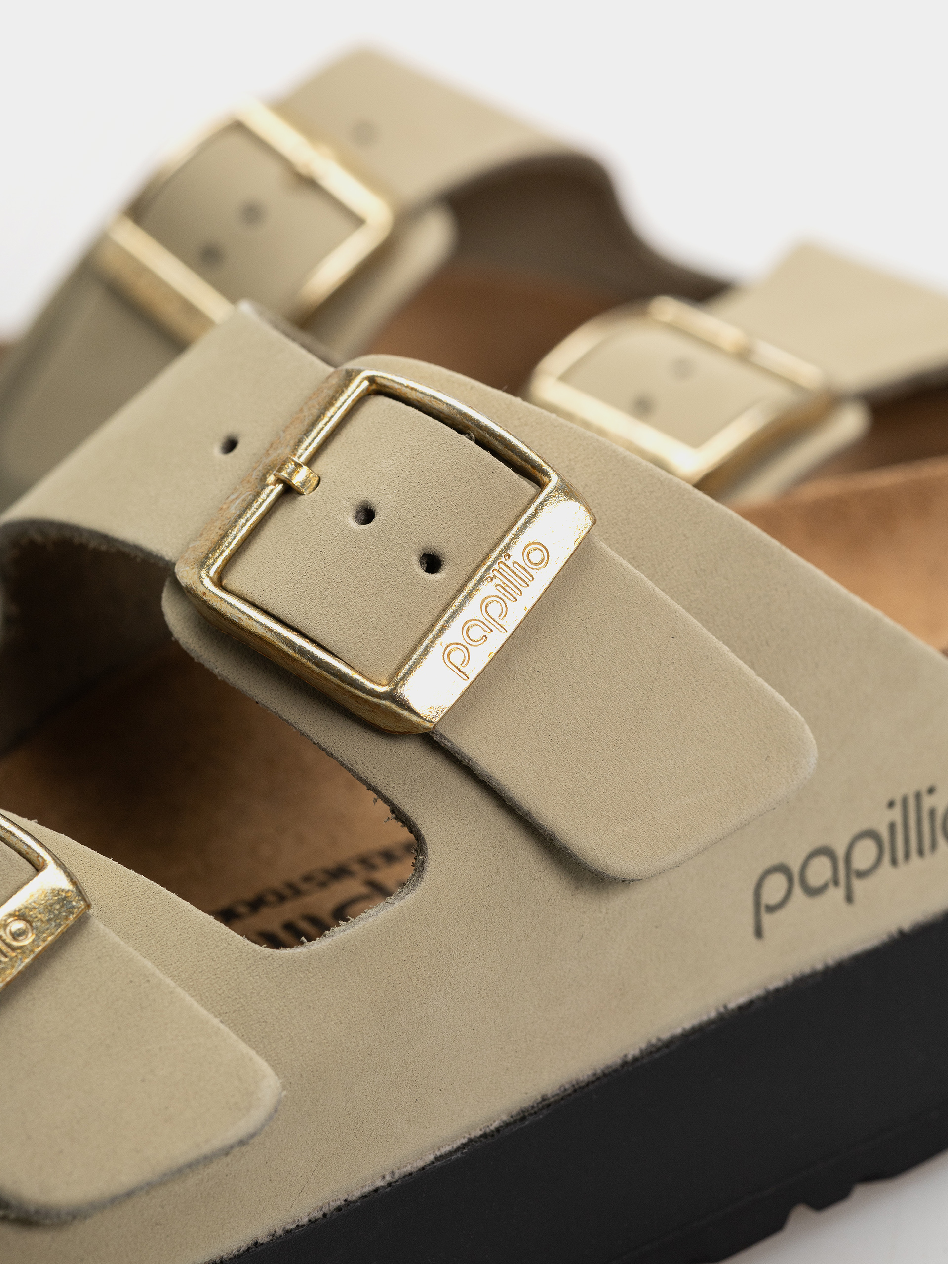 • Birkenstock Arizona Flex Platform Nubuck Leather Narrow este o versiune elevată, mai modernă a modelului iconic Arizona. Talpa platformei Flex cu o secțiune lărgită a călcâiului oferă o stabilitate mai mare și o distribuție mai bună a greutății, în timp ce canelurile orizontale din partea anterioară a piciorului sporesc flexibilitatea și netezimea pasului. Partea superioară este realizată din piele nubuc de înaltă calitate, cu un aspect natural, ușor rustic, care dezvoltă o patină frumoasă în timp. Talpa anatomică din plută și latex și căptușeala moale din piele întoarsă garantează confortul pe tot parcursul zilei. Două curele reglabile cu catarame metalice permit o potrivire perfectă pentru un picior mai îngust (narrow fit).